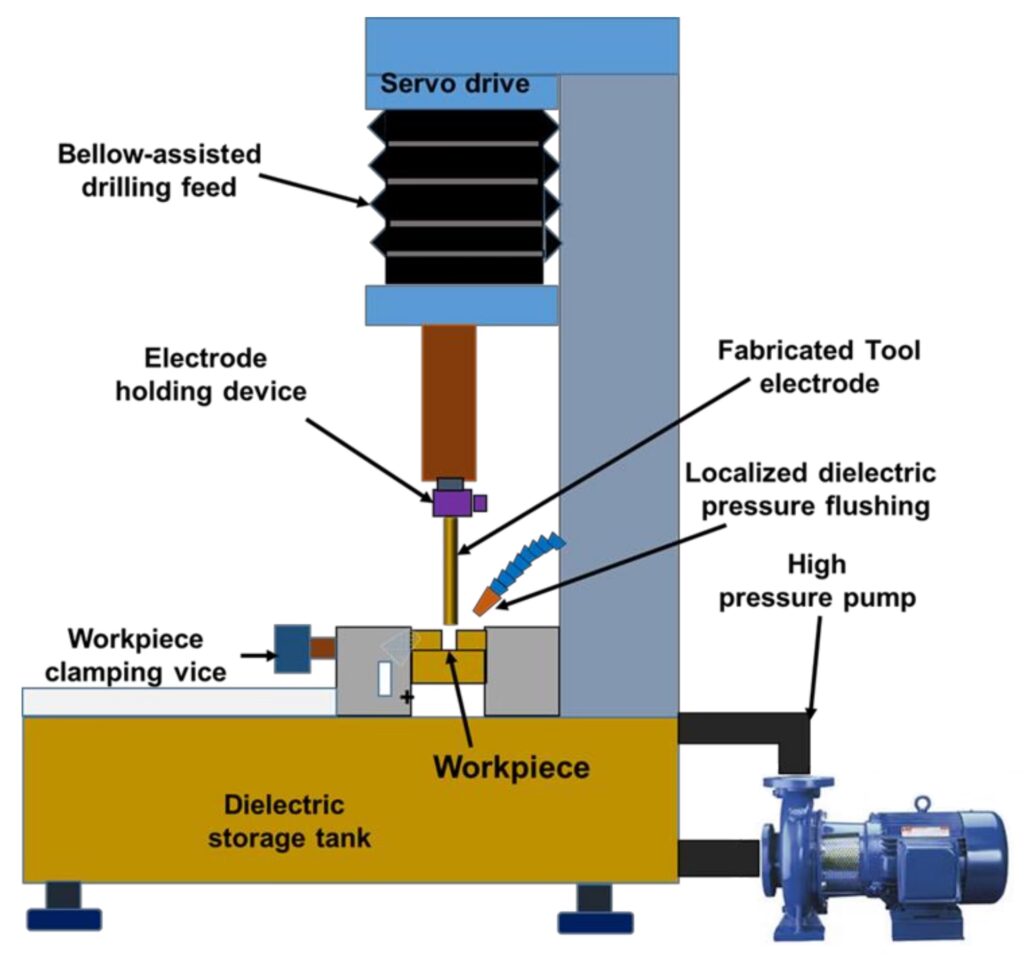 - Creación de Geometrías Complejas y Relaciones de Aspecto Elevadas: La naturaleza no contactante del proceso y la capacidad de usar electrodos de formas complejas permiten crear cavidades, ranuras, perfiles y micro-orificios con relaciones de aspecto (profundidad vs. diámetro) muy altas, que serían imposibles con métodos mecánicos.