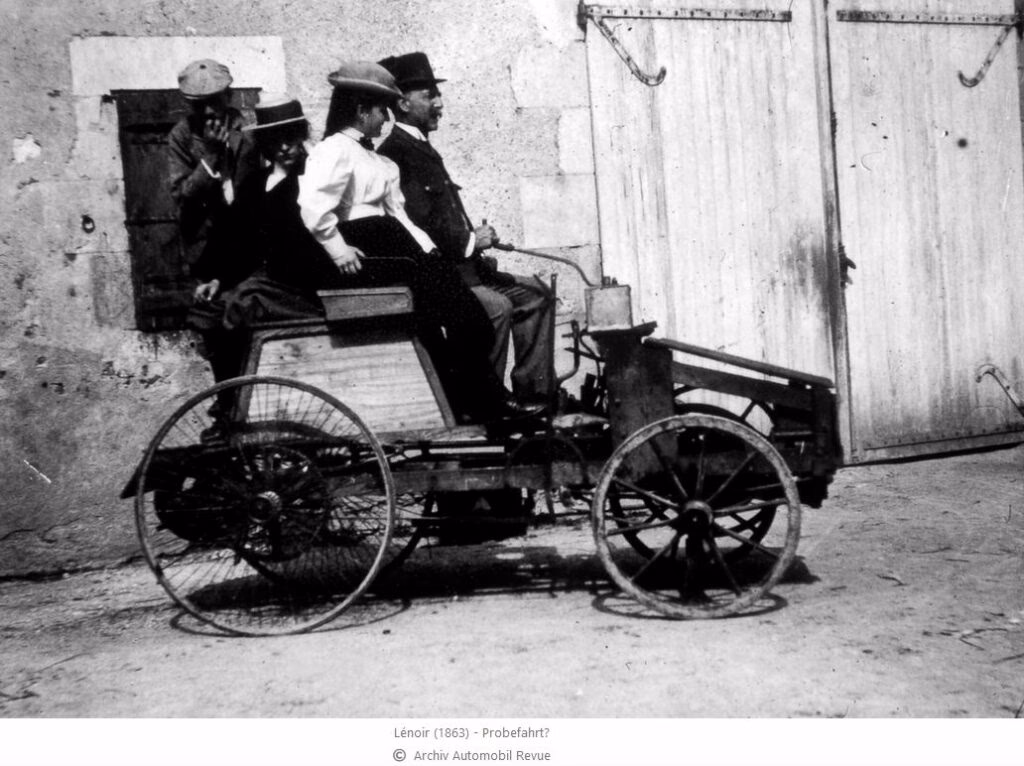 Lenoir también experimentó con aplicaciones de transporte para su motor. En 1863, instaló una versión mejorada en un barco de 12 metros de longitud que se utilizó en el río Sena durante dos años. Aunque se le atribuye la construcción del "primer coche en el mundo" por el Automobile Club de France (ACF) en 1900, esta afirmación es debatible, ya que hubo vehículos autopropulsados anteriores (como el de vapor de Cugnot en 1769 o el MCI de de Rivaz en 1813), y el primer automóvil de gasolina práctico se asocia más comúnmente con Karl Benz.