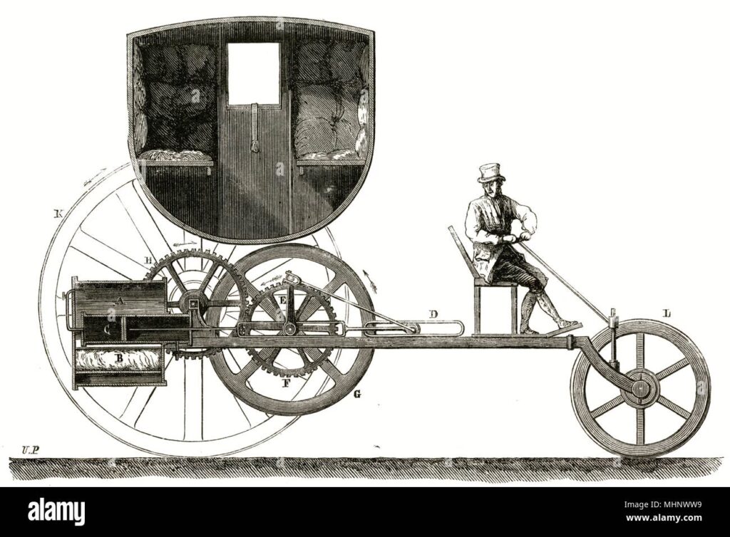 La visión de Trevithick no se limitaba a las máquinas estacionarias. Creía firmemente en el potencial del vapor para el transporte. En la Nochebuena de 1801, construyó y condujo su primer vehículo a vapor, un carruaje, subiendo una colina en Camborne, Cornualles. Este fue uno de los primeros vehículos autopropulsados por vapor en el mundo. Poco después, en marzo de 1802, obtuvo una patente histórica junto a su primo Andrew Vivian para motores de alta presión para uso estacionario y locomotor. En 1803, construyó un segundo carruaje, que condujo por las calles de Londres, demostrando la viabilidad del transporte a vapor.