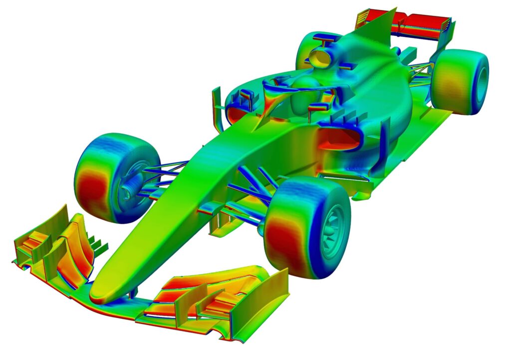 Si hay un ámbito donde la aerodinámica es absolutamente crucial, ese es la Fórmula 1. Cada milisegundo cuenta, y el rendimiento aerodinámico es un factor determinante. En la F1, el CFD es, junto al túnel de viento, una de las herramientas de desarrollo más importantes. Los equipos invierten millones en hardware y software de CFD de vanguardia y emplean grandes equipos de ingenieros dedicados a la simulación.
