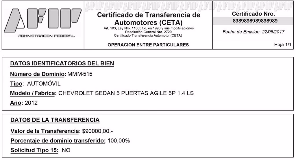 El certificado es exigible cuando el precio de venta o, en su defecto, la valuación del vehículo (lo que sea mayor) supera el monto mínimo establecido por la normativa vigente. Este monto se actualiza periódicamente, por lo que es crucial verificar el valor actual en el sitio web de la AFIP o consultando las tablas de valuación. Si el valor es inferior a ese umbral, el CETA no es obligatorio, pero sí es una exigencia del Registro del Automotor para poder avanzar con el trámite de transferencia, por lo que en la práctica se requiere en casi todas las operaciones.