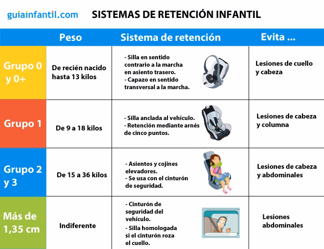 | Altura < 135 cm | Cualquier edad | Uso obligatorio de SRI adecuado a peso y tamaño | La vida del niño depende de elegir y usar correctamente el SRI. |