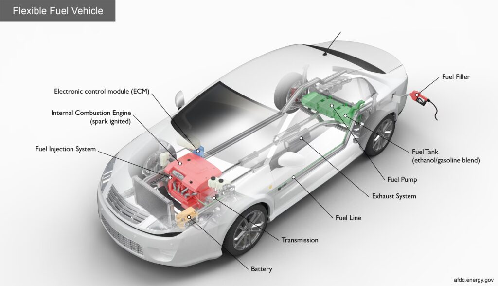 - No. Solo los vehículos de combustible flexible (FFV) o los vehículos diseñados específicamente para etanol (como los E100 brasileños antiguos) están diseñados para usar altas concentraciones de etanol o etanol puro. Los coches convencionales solo pueden usar mezclas bajas de etanol con gasolina, como E10 (hasta 10% de etanol), que es común en muchos países.