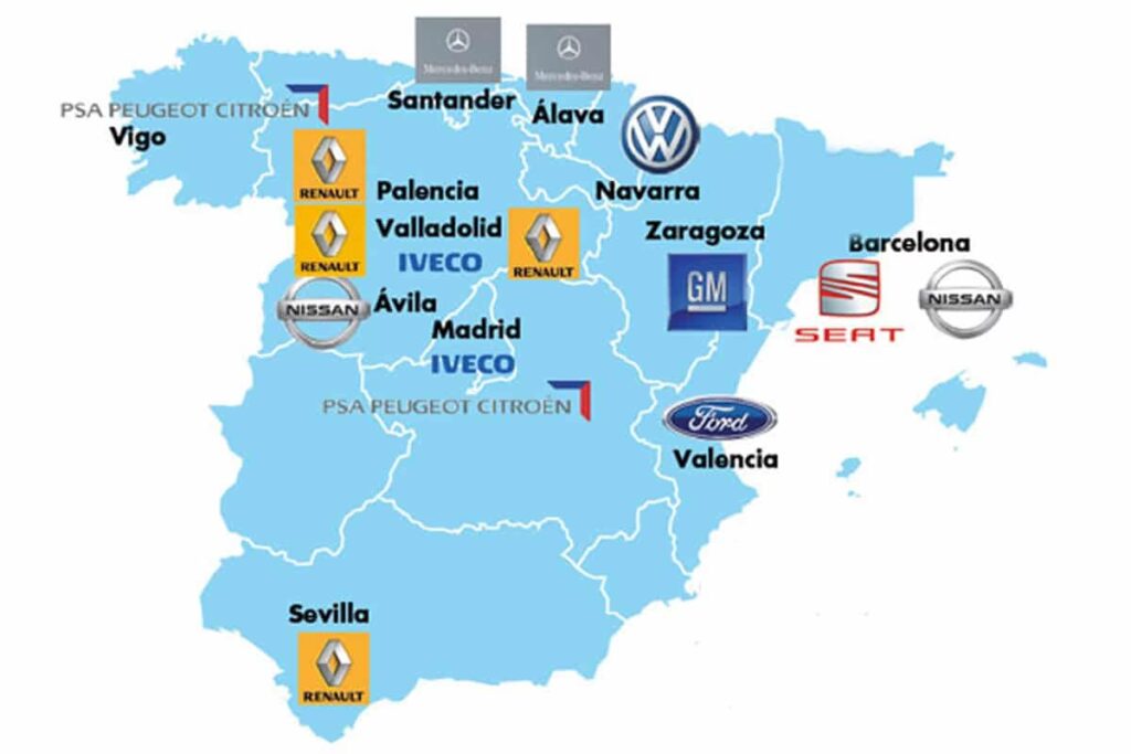 España cuenta con 17 plantas de fabricación de vehículos pertenecientes a 9 marcas multinacionales diferentes.