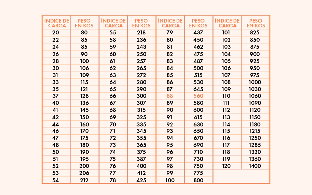 ¿El índice de carga y el código de velocidad influyen en el peso?