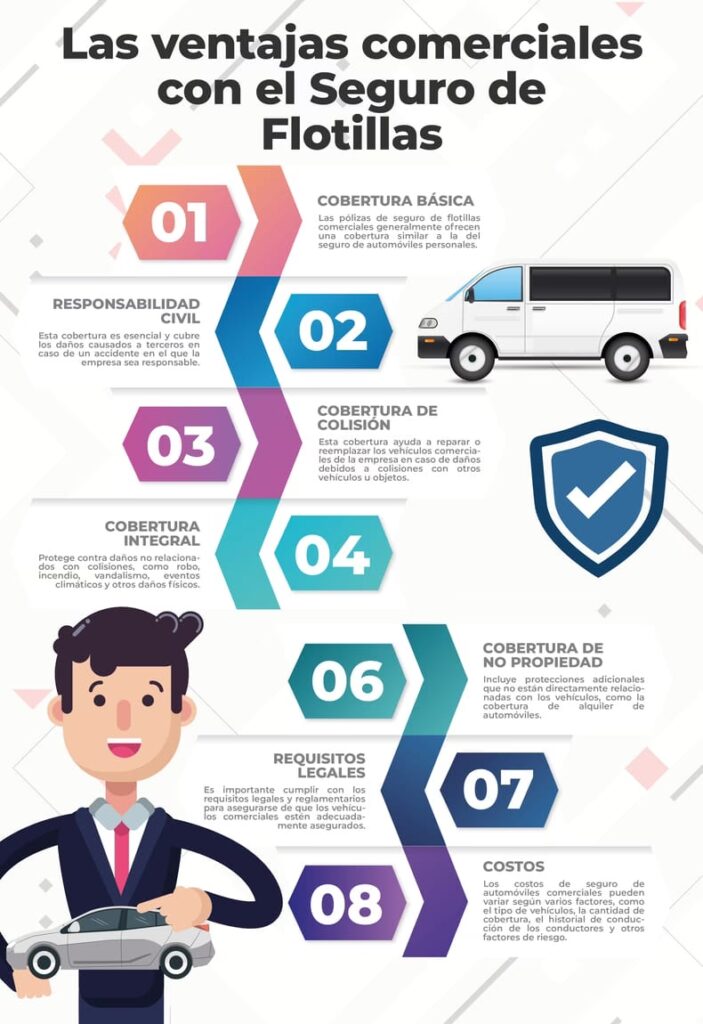 La cobertura principal del seguro de flota está diseñada para proteger los vehículos asegurados y a las personas que los conducen en el curso de la actividad empresarial. Las coberturas típicas incluyen: