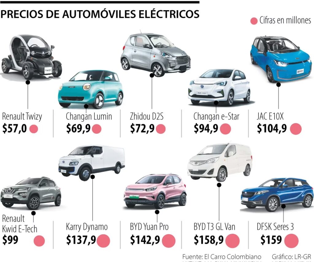 La lista de los diez vehículos eléctricos más vendidos en 2024 muestra la creciente variedad disponible en Colombia: